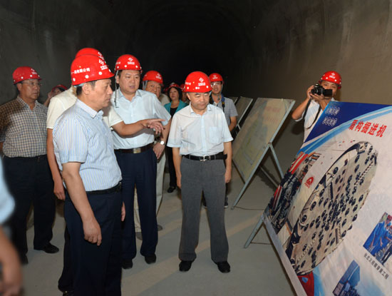 视察组实地察看了南水北调穿黄工程穿郑隧道,并听取了相关工作情况汇报,市人大常委会副主任赵武安陪同调研。