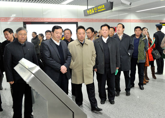 视察组一行在郑州轨道交通1号线绿城广场站实地察看