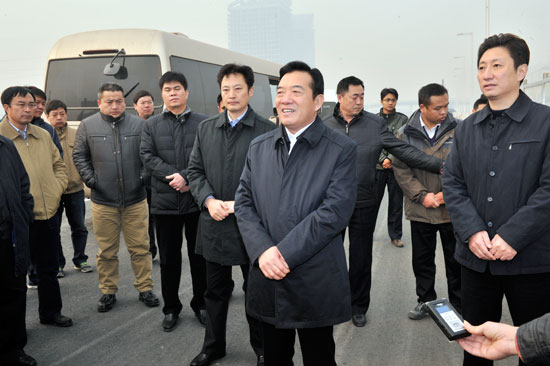 视察组在北三环文化路立交桥建设现场了解我市三环快速化工程建设情况