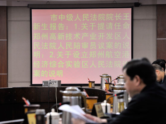 会议听取了市中级人民法院院长王新生关于提请任命郑州高新技术产业开发区人民法院人民陪审员议案的说明,关于提请设立郑州航空港经济综合实验区人民法院的议案的说明。