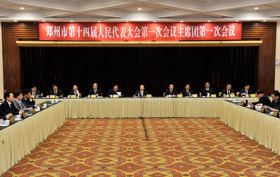 郑州人大网2月19日讯 今天下午,新选出的郑州市第十四届人民代表大会第一次会议主席团在嵩山饭店举行第一次会议。