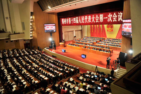 郑州人大网2月20讯 郑州市第十四届人民代表大会第一次会议今天上午在省人民会堂隆重开幕。这是我市新一届人大的第一次会议,肩负全市人民重托的500多名人大代表将在大会期间认真履行宪法和法律赋予的神圣职责,科学谋划今后五年以及2014年的发展蓝图,选举产生本市新一届人大常委会组成人员和“一府两院”领导人员。
