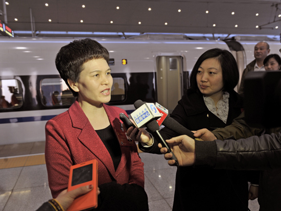 郑州人大网3月13讯 今天下午6时许,随着G661次列车缓缓驶入郑州东站,出席十二届全国人大二次会议的驻郑全国人大代表返回郑州。市人大常委会秘书长王福松到车站迎接。