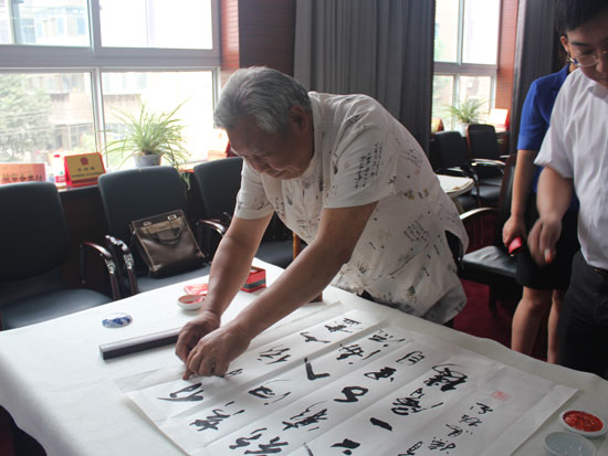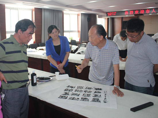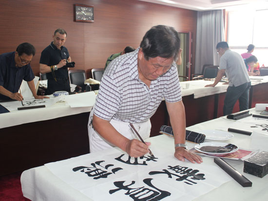 6月13日,市人大系统书画院组织书画名家12人,在李保山院长的带领下,赴管城区人大进行笔会交流活动。管城区人大常委会主任牛延平参加了活动并对书画家的到来表示欢迎。12名书画名家挥毫泼墨,激情创作,3个小时时间共创作书画作品63幅,其中书法57幅,绘画6幅,一件件精美的作品获得了管城区人大同志们的好评。