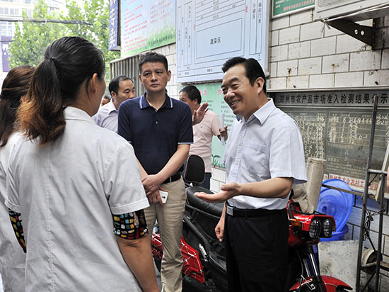 督导组先后深入中原区岗刘蔬菜粮油市场、二七区金海农贸市场和百顺副食品农贸菜市场开展暗访,对市场的卫生保洁、垃圾收集和清运、食品安全、农产品检测等各方面工作进行仔细查看。针对岗刘蔬菜粮油市场存在的农产品检测合格证不及时发放、检测情况公示牌敷衍应付和市场环境脏乱差等现象,白主任当场提出严厉批评并要求相关部门立即整改。对百顺副食品农贸菜市场的规范化管理工作,白主任给予充分肯定,并要求市场管理部门再接再厉,以更高的标准提升更高的服务水平,方便和服务广大人民群众。