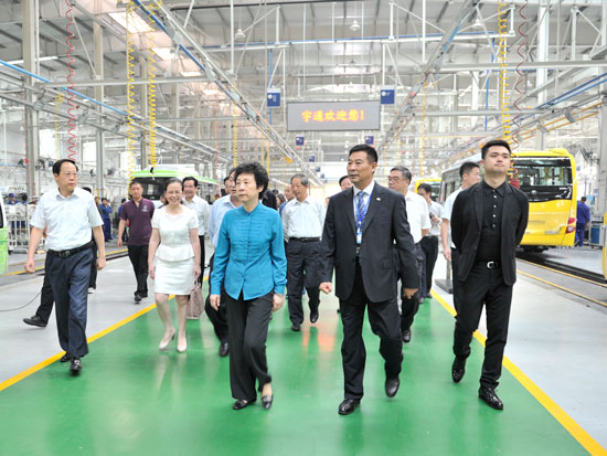 考察组一行先后来到宇通节能与新能源客车生产基地项目、中铁工程装备集团有限公司、跨境贸易电子商务服务试点项目现场进行考察,并听取相关工作汇报。