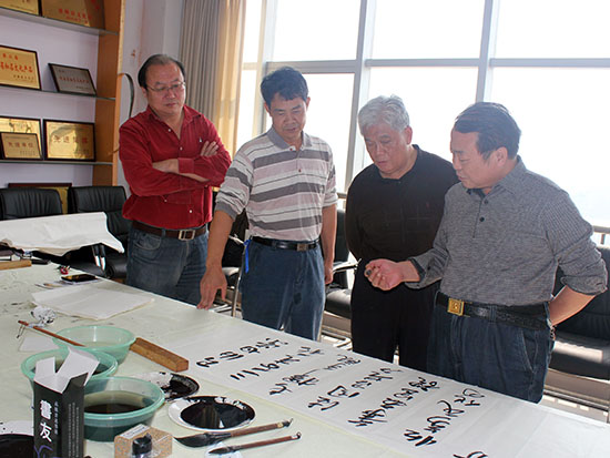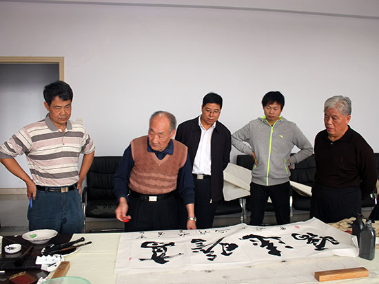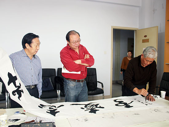 郑州人大网10月14日讯 今天上午,市人大系统书画院组织书画名家11人,在李保山院长的带领下赴惠济区人大开展笔会交流活动。惠济区人大常委会主任禹舜参加了活动并即兴作词一首随笔上纸,博得了阵阵掌声。 11名书画名家挥毫泼墨,激情创作,3个小时时间共创作书画作品60幅,其中书法作品52幅,绘画作品8幅,一件件精美的艺术作品获得了惠济区人大同志们的好评。