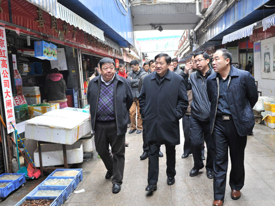 今天上午在市人大常委会副主任王贵欣带领下,市人大常委会预算工委、市市场发展局、市爱卫办、中原区等部门负责人检查督导集贸市场专项整治工作。