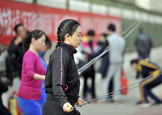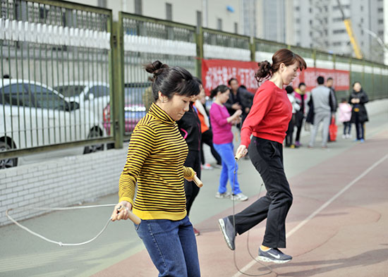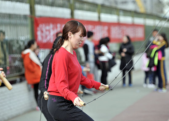 郑州人大网3月4日讯 3月1日-3月4日,市人大常委会机关组织干部职工参加郑州市第七届“百万妇女健身活动”展示大赛 ,展现了机关女同志健康文明、积极向上的精神风貌。图为部分参赛选手在进行跳绳和踢毽子比赛。