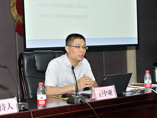 视察组首先集中参加了工业转型升级专题培训,河南省社会科学院工业经济研究所王中亚研究员以《探索区域工业转型升级之路》为题,进行了精彩的授课。