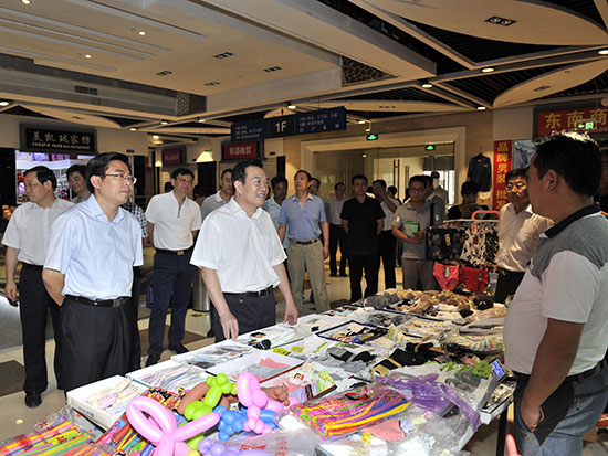 白红战一行走进华南城小商品市场,与部分商户亲切交谈,详细了解华南城项目进展情况。截至目前,华南城项目已经完成投资超过100亿元,已建成并具备使用条件的面积200万平方米,投入营业的面积约40万平方米,开业商铺达9000余家,涵盖小商品、建材、五金机电及汽摩配件等四个业态;电商产业园运营势头良好,目前已入驻小微网商100余家、大学生电商项目创业团队15支。计划再开工建设300万平方米,营业面积近期再增加30万平方米。