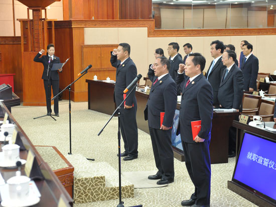 会议还表决通过了有关人事任免案。新任命的副市长李喜安作任职发言。会议为新任命人员颁发任命书。新任命人员进行就职宣誓。