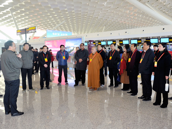 代表们乘坐C2961次高铁从郑州东站来到郑州机场,实地视察了郑州机场高铁站、新郑国际机场T2航站楼并听取机场二期建设情况的介绍。全国人大代表、市政协副主席薛景霞说:“从郑州东站坐高铁,不到20分钟我们就来到了机场,并且看到了机场二期工程的宏伟现状。我深刻感受到郑州的变化,郑州一定会建设成为现代化国际商都城市。”