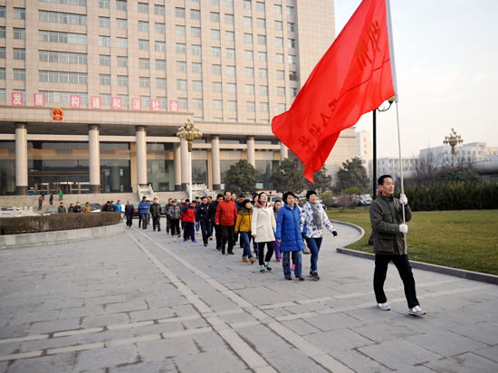 郑州人大网1月1日讯 迎着2016年第一缕阳光,承载着新的希望,迈开脚步跑向新的一年。1月1日上午,河南省2016年元旦春节“全民健身幸福中原”系列活动启动仪式暨郑州市元旦长跑健身活动在绿城广场隆重举行。市委副书记、市长马懿,省体育局巡视员毛宏,市人大常委会副主任舒安娜,副市长刘东,市政协副主席吴晓君,市政府秘书长袁三军等出席,并与两万余名绿城市民一道通过参加长跑这一健康方式喜迎2016新年的到来。市人大常委会机关共60余名同志参加活动。
