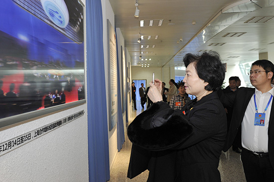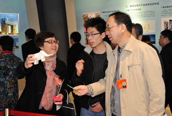展览共分为发展综述、新型城镇化建设、现代产业体系、以网格为载体坚持依靠群众推进工作落实长效机制、未来展望五个篇章。在讲解员引领下,代表们通过图片、文字、视频等形式全面了解到我市“十二五”的奋斗历程以及全市经济社会发展取得的丰硕成果。