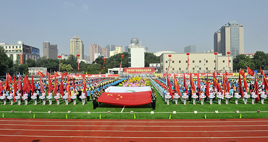 9时整,开幕式正式开始。市直73个单位代表队伴随着激昂的运动员进行曲,迈着矫健的步伐依次入场。入场式结束,举行了庄严的奏唱国歌仪式。