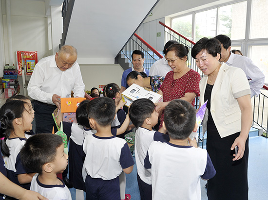 舒安娜副主任一行先到市实验幼儿园和伊河路小学,给孩子们送去玩具、文具、书籍等礼物,并祝大家节日快乐,同时向辛勤培养孩子成长的教师们表示感谢!