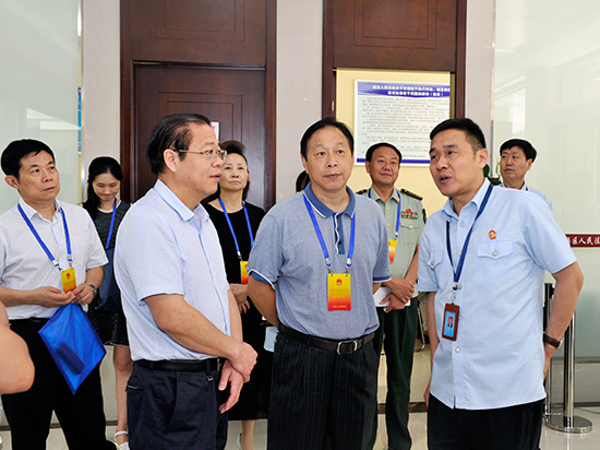 视察组一行到管城区人民法院立案大厅、信访大厅实地察看,并到市中级人员法院听取我市审判监督工作情况汇报。