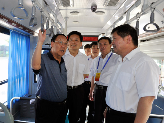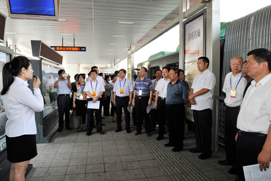 视察组一行先后到郑州市公交总公司智能调度指挥中心和花寨公交场站,实地察看我市智能交通工程建设情况、公交场站建设和新能源公交车辆推进应用情况,并体验乘坐陇海路快速公交了解了快速公交运营情况。