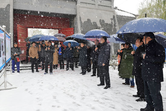 冒着风雪,视察组一行先后来到荥阳故城纪信庙、惠济桥、大运河通济渠郑州段、商城遗址等地视察并听取相关工作汇报。