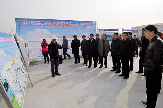 贾鲁河作为郑州境内最大的一条河流,是全市水生态文明建设的重中之重。视察组一行沿贾鲁河综合治理工程建设工地,先后察看了贾鲁河南四环段、冯湾村段、中州大道段、贾鲁湖段等沿线施工现场,听取二七、中原、惠济、金水各段工程推进建设情况。
