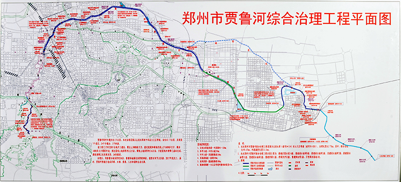 据了解,今年9月底全线开工的贾鲁河综合治理工程范围从尖岗水库至中牟县大王庄弯道,全长62.77公里。按照规划,整个工程预计投资150亿元,对贾鲁河开展河道疏挖、堤防填筑、堤顶道路、岸坡护砌、桥梁工程、生态绿化、节点景观、拦蓄水建筑物等工程项目,并开挖3处湖泊湿地,改善区域生态微循环。目前,贾鲁河综合治理工程已进入全面建设阶段,部分河段已实现全线贯通施工,预计明年2月底前完成河道蓝线内土方开挖和截污治污工程。整个工程预计2017年年底完工,届时,贾鲁河最窄处不低于90米,最宽处有350米。郑州市将新增水面面积9235.65亩,由原来的2644.35亩增加到11880亩,相当于74个如意湖;新增绿化面积8200亩,相当于新增10个郑州植物园沿河分布点缀在城市当中。