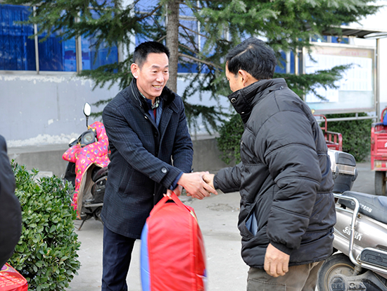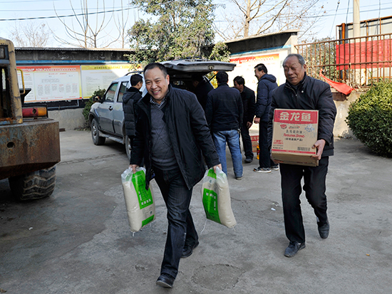 郑州人大网1月12日讯 今天上午,2017年鸡年春节前夕,市人大常委会机关组织人员冒着严寒,来到帮扶村(上街区峡窝镇冯沟村)给贫困户送去了大米、面、食用油、被子等慰问品,为村民送去了党的温暖和关心。