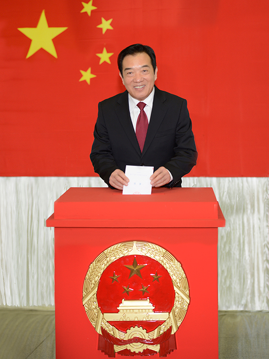 9时,市人大常委会主任白红战,副主任周长松、舒安娜、赵明恩、赵武安、王广灿、王贵欣、赵新中、王铁良、范强,秘书长王福松等在投票站现场,仔细听取了选民投票注意事项、选区正式代表候选人名单和选举办法。在总监票人、监票人现场检查票箱后,白红战等领导拿出选民证,交给工作人员核验,并各自领取了选票,在写票处认真填写选票后,依次走到票箱前,郑重投下庄严神圣的一票。