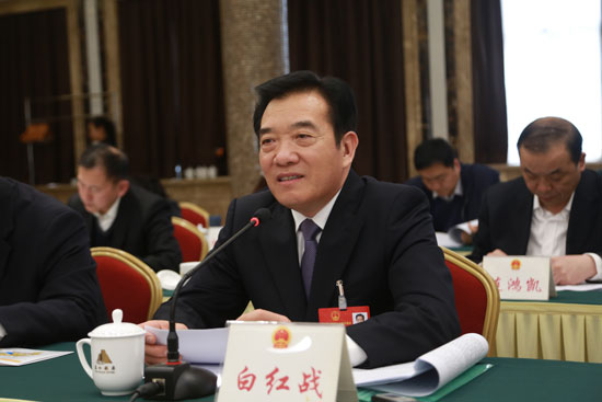 4月9日下午、10日上午,市人大常委会主任白红战来到他所在的中原代表团,和代表们继续审议政府工作报告,审查《关于郑州市2016年国民经济和社会发展计划执行情况与2017年计划(草案)的报告》《关于郑州市2016年财政预算执行情况和2017年财政预算(草案)的报告》,审议关于接受有关同志辞职的决定(草案),审议选举办法(草案),审议市十四届人大有关专门委员会主任委员人选表决办法(草案)。