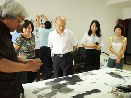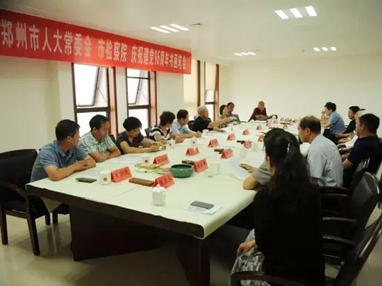 6月23日,为迎接建党九十六周年,郑州市人大系统书画院与市检察官文联共同举办书画笔会。郑州市人大系统书画院院长李保山、常务副院长赵英一行十人,市检察院副检察长、市检察官文联主席朱专兴,市检察院政治部主任、市检察官文联常务副主席丁力,市检察院有书画特长的检察干警十余人,共聚一堂,以书画艺术形式表达对中国共产党的热爱和忠诚。著名书画家、河南中国书画协会副主席唐海,大河书画院常务副院长康华锋亲临现场指导。
