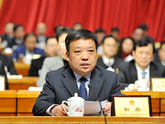 大会主席团常务主席,市委副书记、秘书长靳磊主持市十四届人大六次会议第二次全体会议