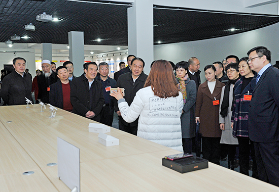 在位于龙子湖湖心岛的郑东新区智慧岛展厅,代表们一行观看了智慧岛大数据产业介绍宣传片,并听取大数据等相关情况介绍。当了解到目前智慧岛已落地63家大数据企业,基金类企业通过工商部门名称预核准183家等数据后,代表们纷纷为之点赞。