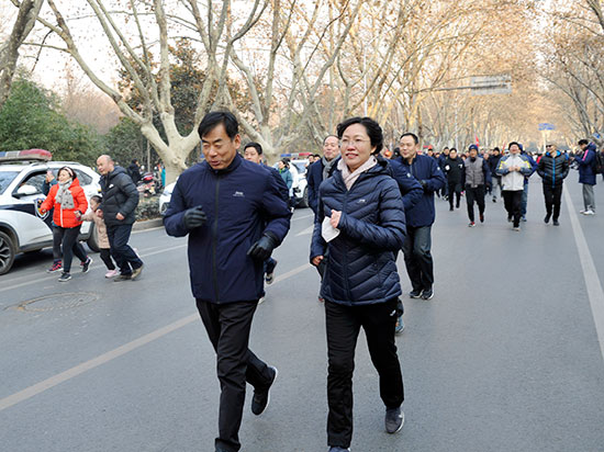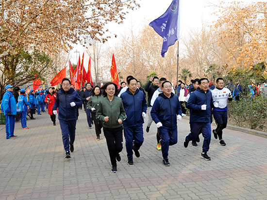 郑州人大网1月1日讯 迎着新年的阳光,承载着新的希望,健康跑进新的一年。今天上午,绿城广场彩旗招展,一片欢腾。“全民健身我参与 体育强市我添彩”2019年郑州市元旦春节全民健身系列活动启动仪式暨“体彩杯”郑州市第34届元旦长跑活动在这里隆重举行。市人大常委会副主任赵新中、法建强和机关一百余人参加活动,并与现场万余名绿城市民一道,通过参加长跑这种健康的方式喜迎2019新年的到来。
