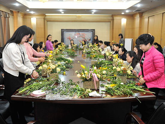 “东风随春归,发我枝上花。”3月8日上午,郑州市人大常委会机关二楼会议室花香四溢。在第108个国际三八妇女节到来之际,为陶冶情操、提高审美、品味生活,机关妇委会邀请机关全体女同志,举办了一场别开生面的插花艺术活动。
