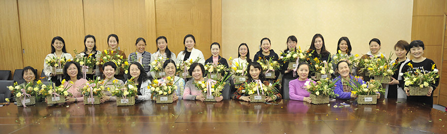 满庭芬芳满堂彩,欢声笑语伴随来。活动在妇委会主任对大家节日的祝贺中拉开帷幕。特邀花艺师生动形象地给大家普及了插花的寓意、花材知识和插花技巧,再逐步具体给大家示范指导。女同志们兴致盎然,一丝不苟地专注于自己的创作,修枝剪叶、设计造型,精细再精细,完美再完美…鲜花的芬芳娇艳,女同胞们的欢笑脸庞,绘就了一幅和谐美丽的温馨画面。