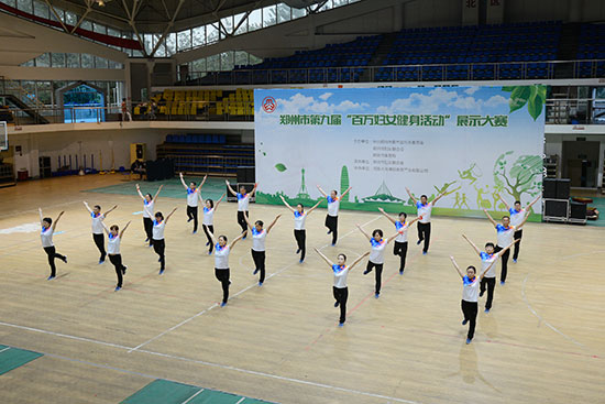 4月25日,郑州市第九届“百万妇女健身活动”展示大赛广播操比赛在郑州大学南校区体育馆展开角逐,共有来自各县(市、区),市直机关,企(事)业单位的42支代表队的近1200余人参赛。 比赛现场,市人大常委会机关代表队队员们精神抖擞,动作整齐划一,一伸手、一抬腿,每一式都刚劲有力,将广播体操的力与美演绎得淋漓尽致,荣获了比赛一等奖,充分展现了人大机关妇女积极健身的运动风采。