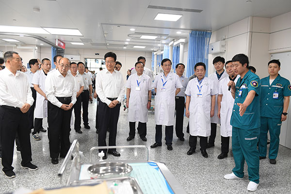在郑州大学第一附属医院郑东新区院区,张春贤一行走进门诊大厅和急诊中心,认真了解该院医疗救助工作开展情况以及郑州市医疗救助发展历程、覆盖范围、重要举措、工作成效等。在郑州市儿童福利院,张春贤走进活动室、训练室、康复中心,与福利院的孩子们亲切互动交流,向工作人员询问孩子们日常生活、康复训练、成长学习等情况。张春贤一行还先后来到郑东新区智慧岛国家大数据综合实验区、千玺广场、中央文化区“四个中心”的奥体中心,详细了解郑东新区规划、智慧岛建设以及市民公共服务等情况。