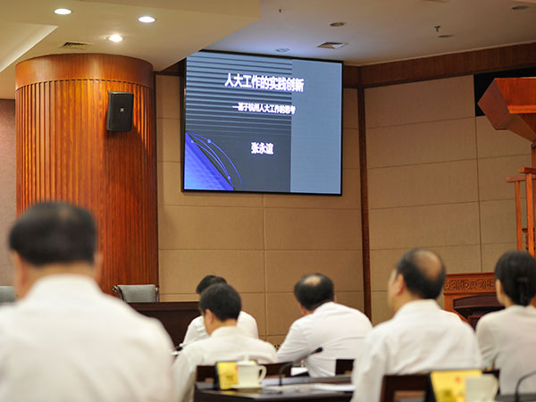 张永谊以历史到现实、理论到实践的高度,从人大制度自信、岗位自信,新时代人大工作如何与时俱进等两大方面,深入解读了地方人大工作的指导思想,地方人大常委会法律地位,地方人大基本职权等内容,系统回顾了人民代表大会制度的产生、形成、进展等发展历程,就如何坚持好、完善好人民代表大会制度以及如何做好新形势下的人大工作进行了深刻的阐述、分析和展望,并结合杭州人大工作的先进经验与做法与参会人员进行了交流和探讨。