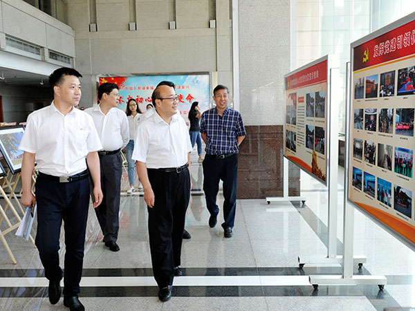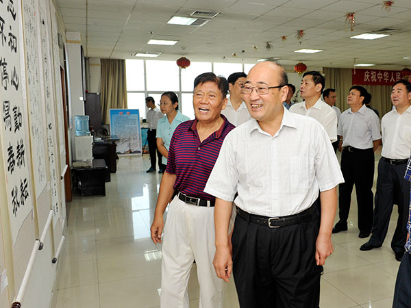 郑州人大网8月28日讯 今天上午,郑州市人大常委会机关“辉煌70年.奋进新时代”庆祝建国70周年书画摄影展开幕。市人大常委会主任胡荃,原副主任、市人大系统书画院院长李保山,常委会机关干部一同参观展览。