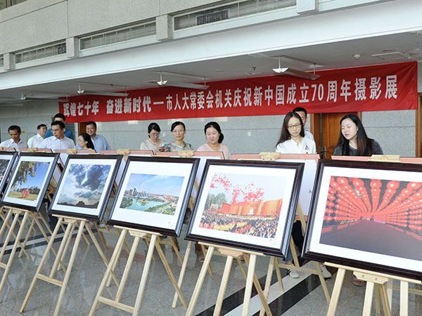 为隆重庆祝新中国成立七十周年,歌颂党的丰功伟绩,赞美祖国大好河山,弘扬优秀传统文化,充分展示我市干部群众在党的领导下艰苦创业、奋发图强取得的辉煌成就,充分展现人民群众昂扬向上、锐意进取的精神风貌,进一步激发广大干部职工干事创业的热情,根据市人大常委会机关庆祝建国70周年系列活动安排,市人大常委会办公厅举办了以“辉煌70年•奋进新时代”为主题的庆祝新中国成立70周年书画摄影展。