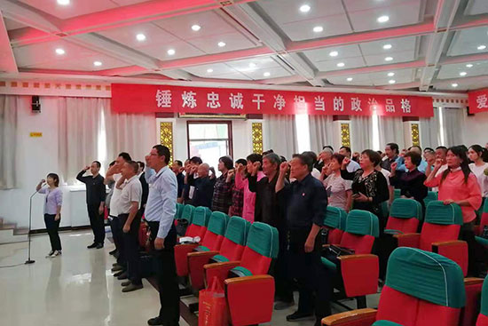 下午,全体同志在竹林镇学术报告厅观看了专题片《竹林深处》、《赵明恩在巩义市“不忘初心牢记使命”主题教育事迹报告会上的发言实况》、《竹林镇全体党员决战黄牛寨参加工程攻坚实况》后,全体党员重温了入党誓词、合唱了《没有共产党就没有新中国》,并为9月份入党的同志过了集体政治生日。