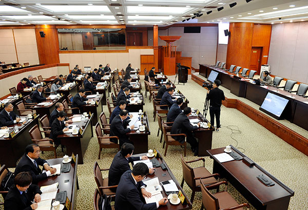 市人大常委会组成人员和常委会机关全体干部聆听讲座。