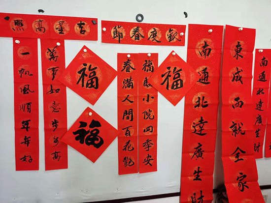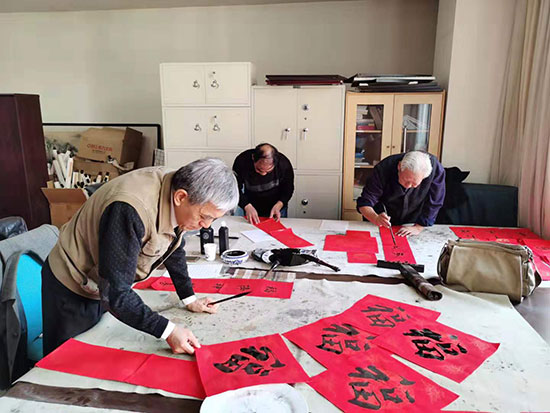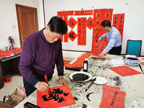 近日,市人大常委会机关开展”写春联,迎新春,送温暖”活动,市人大系统书画院院长李保山和书法家们挥毫泼墨,一展风采,为机关离退休和在职人员义务写春联400幅,在寒冷的冬日里送去暖暖的问候,受到同志们的一致好评。