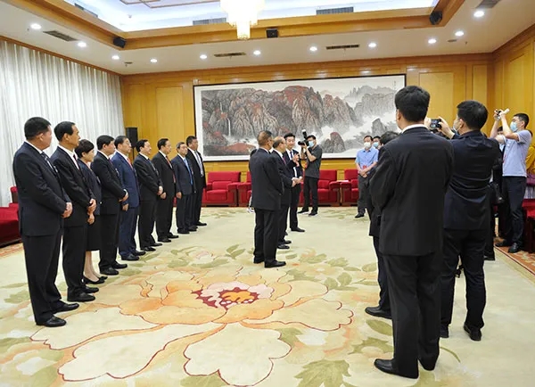 5月15日下午,市十五届人大三次会议闭幕后,市人大常委会主任胡荃看望慰问郑州全媒体参加报道的记者,对大家的辛勤工作表示衷心感谢和诚挚慰问。