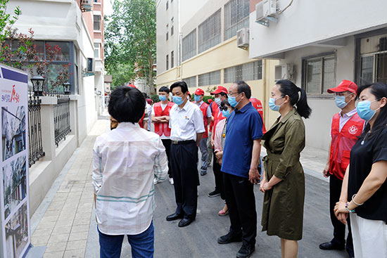 在人民路街道工人新村,认真听取街道负责人有关辖区老旧小区改造项目的情况介绍,走进辖区楼院、社区医疗服务站、老年人日间照料中心、城市书房等地,实地参观感受这里发生的可喜变化。
