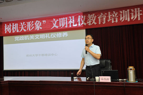 本次讲座邀请了国家高级礼仪培训师、河南省社会主义学院客座教授、郑州大学干部培训中心特聘专家常晋波教授,围绕党政机关文明礼仪主题,结合常委会机关工作实际,突出待人接物、仪容举止、会务规则等内容,从礼仪规范和行为纠正两个方面进行了生动活泼的讲解和互动,让听众感受传统文化的深刻内涵、现代礼仪的行为规范、不容忽视的仪态细节。