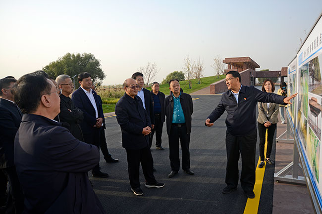 南裹头广场是一个集生态、观光、综合服务、演艺功能为一体的黄河观光景点,人大代表们在浅水湿地的亲水平台上欣赏黄河美景,认为郑州黄河滩地公园建设满足了市民休闲游憩的需求,让市民有更多的获得感和幸福感。