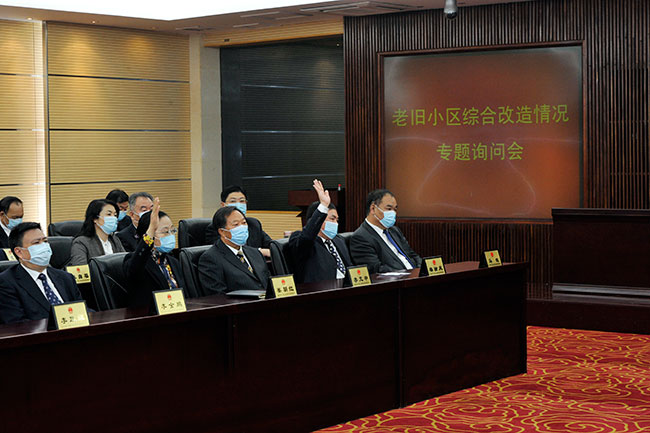 11月5日,市十五届人大常委会第二十次会议就我市老旧小区综合改造情况开展专题询问。市人大常委会副主任王广灿、法建强、张春阳、袁三军、王福松、孙黎、宋书杰、蒿铁群参加会议。