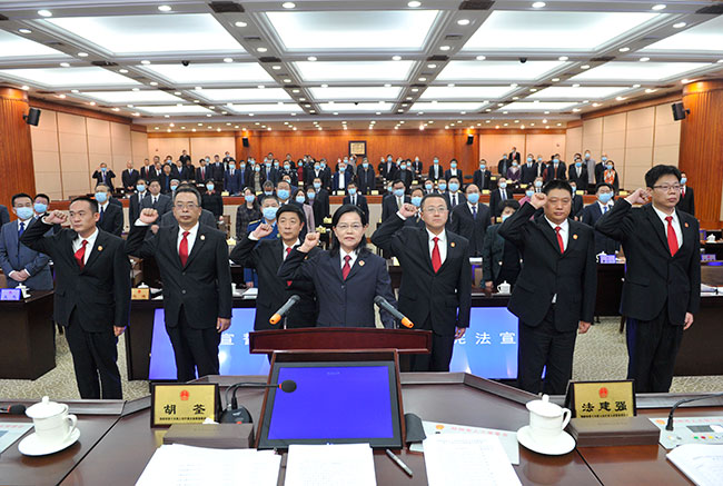 新任命的市中级人民法院法律职务人员和市人民检察院检察职务人员进行宪法宣誓
