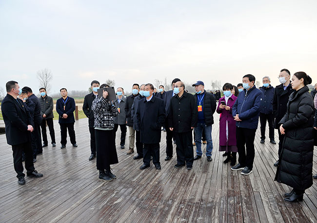 12月10日-11日在洛阳期间,视察组一行先后来到洛阳市规划展示馆、天街及东方博物馆之都研学营地、伊河湿地、二里头夏都遗址博物馆和考古遗址公园、中信重工高端装备制造产业园、普莱柯生物工程股份有限公司、洛阳国家大学科技园、兴洛湖公园、隋唐洛阳城国家历史文化公园宫城区等地,看项目、听汇报、议发展,实地了解洛阳城市规划建设、文物考古的发掘和开发利用、科技创新、产业结构优化升级、改善生态环境等工作情况。
